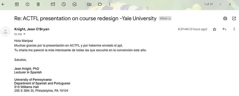 A thank-you note from a 2024 ACTFL Convention attendee I have never met